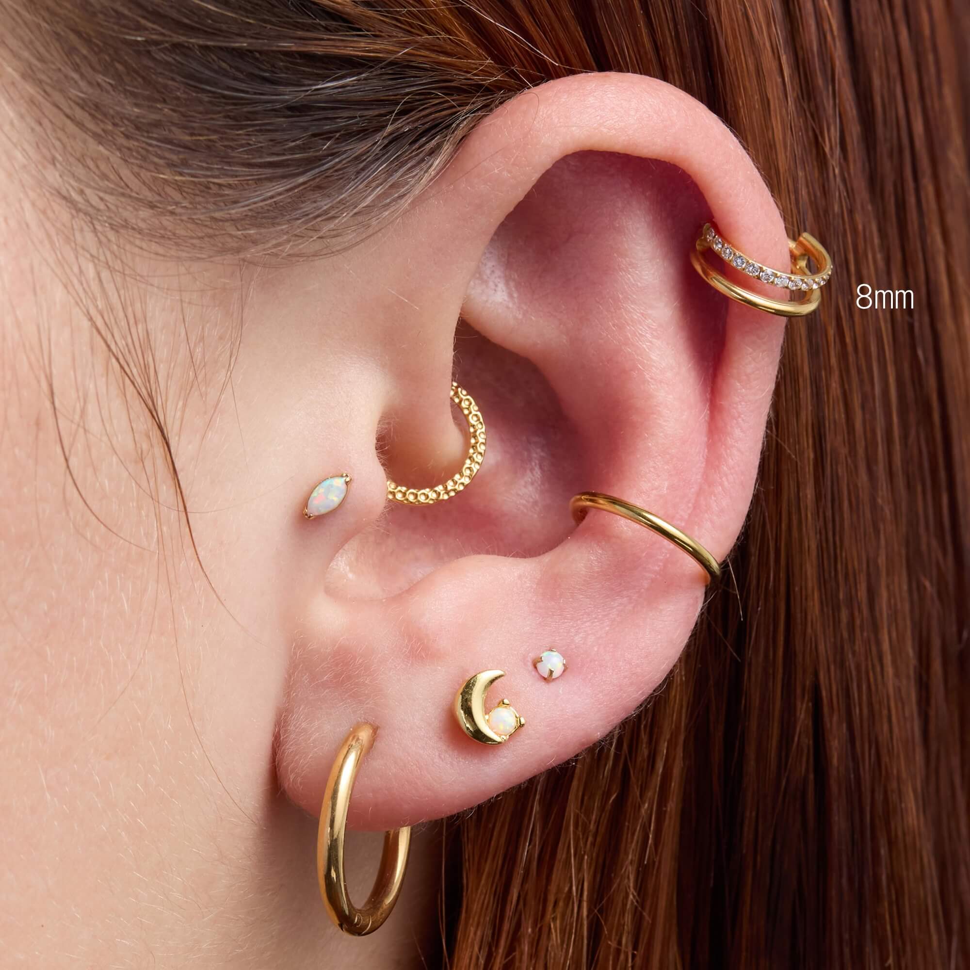 One clicker, all the impact. The Double Illusion White CZ Clicker is a single seamless design that creates the look of two stacked hoops, pairing a smooth polished band with a parallel row of white cubic zirconia. The result is subtle depth and sparkle without any extra bulk. Available in 8mm and 10mm inner diameters.