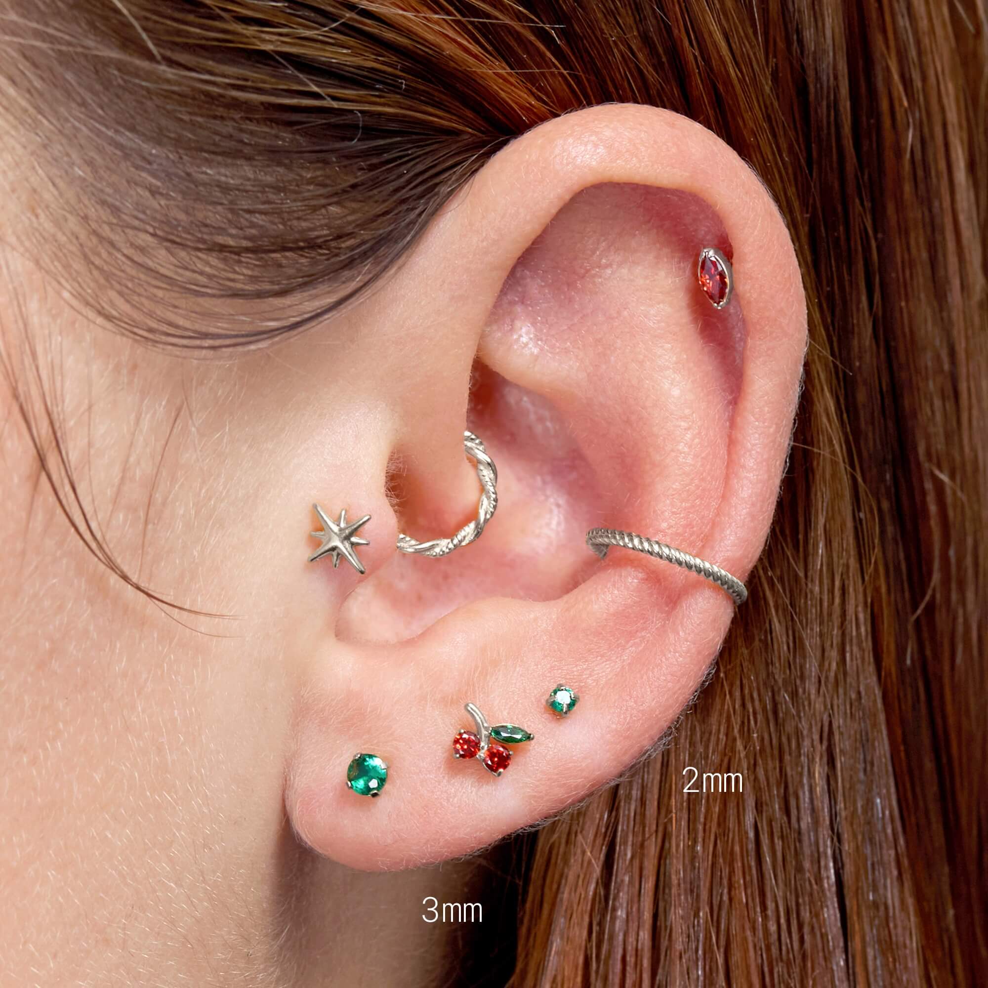 A fresh pop of colour with a refined finish. The Green Simple CZ Piercing features a round-cut cubic zirconia in rich green tones that catch the light beautifully without feeling overpowering. Available in both 2mm and 3mm stone sizes, itās an easy choice for subtle accents or a slightly bolder everyday look.