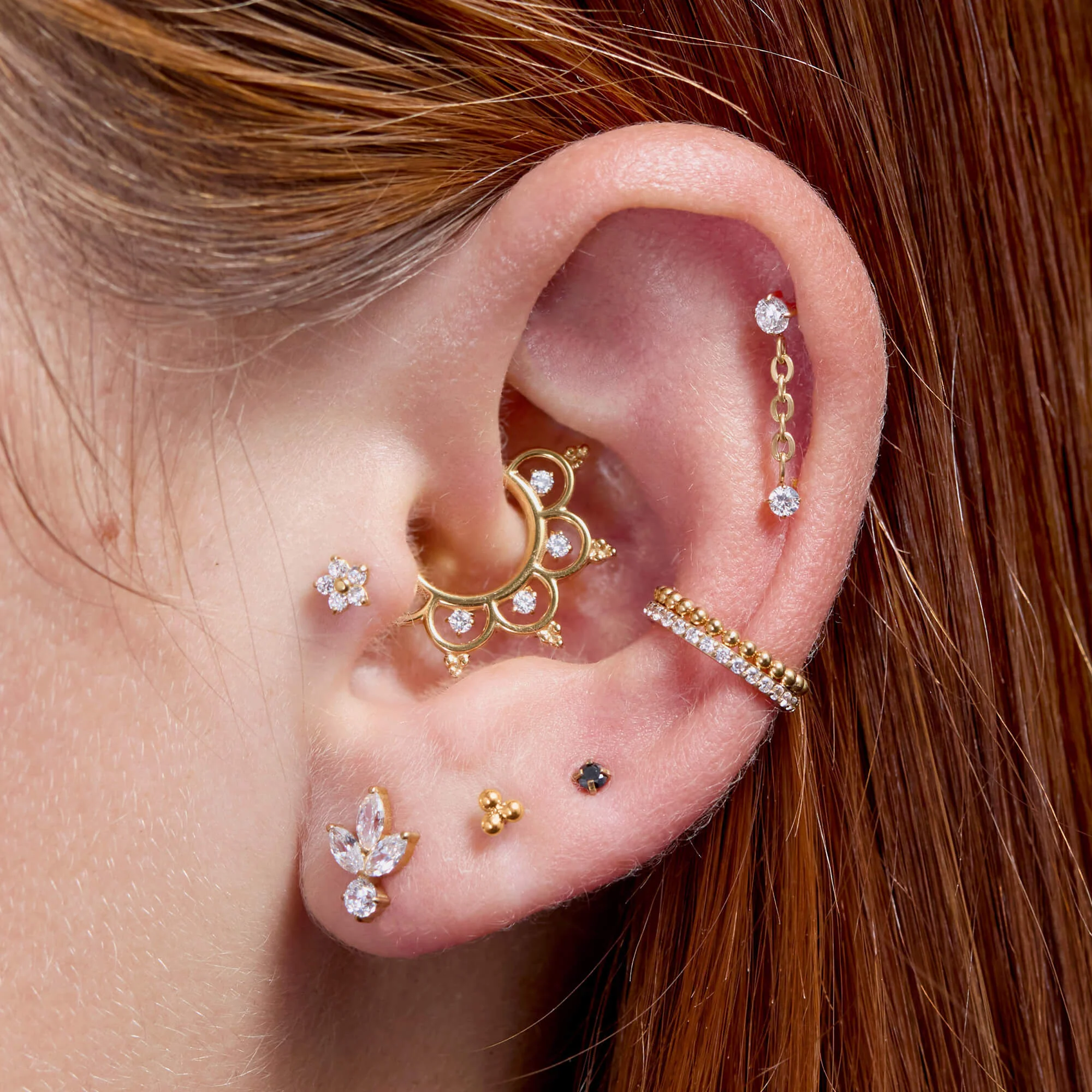 Inspired by soft petals and gentle symmetry. The Lotus Radiance Clicker features a polished central hoop framed by lotus-style curves, each accented with white cubic zirconia for balanced sparkle and detail. Designed as a seamless clicker, it offers a refined yet eye-catching look that feels special without being overdoneāperfect for elevating everyday piercings.