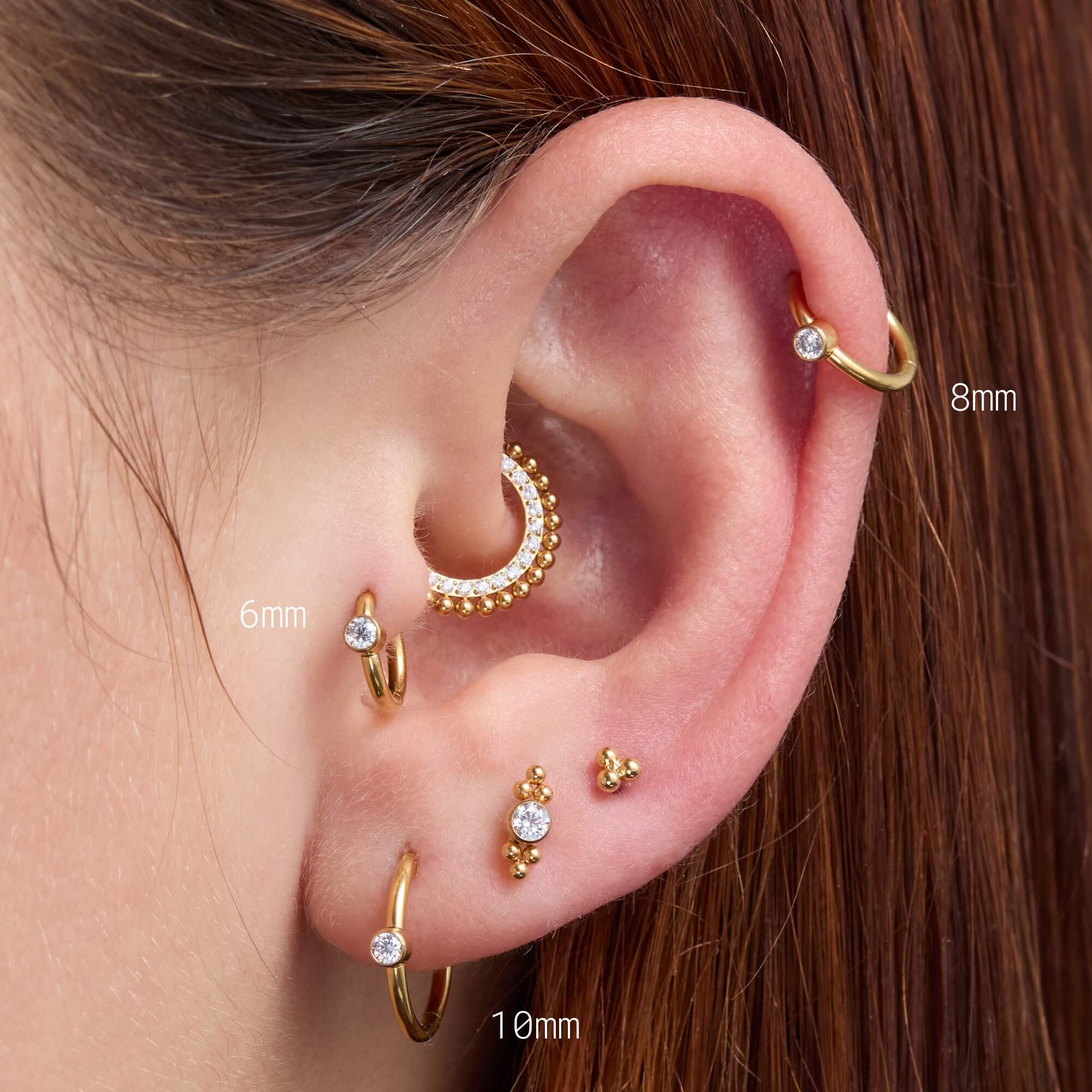 Sometimes one stone says it all. The Solitaire Bezel Clicker features a single white cubic zirconia set in a smooth bezel for a clean, timeless finish. Refined and easy to style, it’s a go-to piece for minimalist looks that still feel considered. Available in 6mm, 8mm and 10mm inner diameters.
