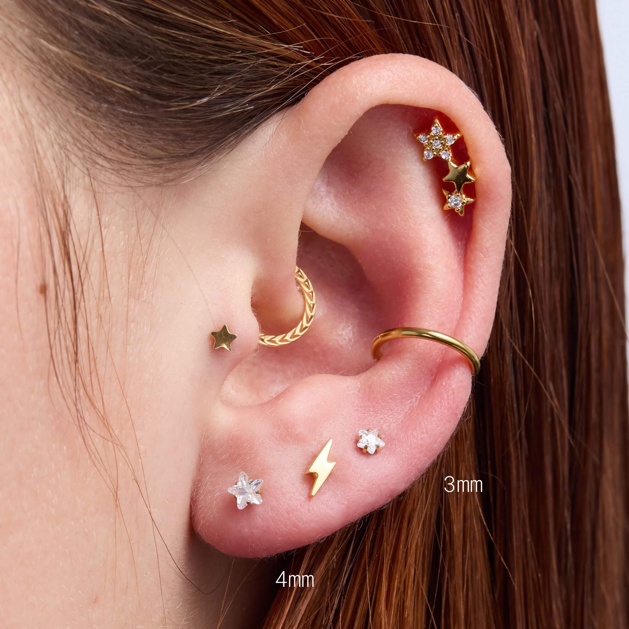 A little sparkle, done right. The White Crystal Star Piercing features a clean, five-point star cut with crisp facets that catch the light beautifully. Available in 3mm and 4mm, itās perfect for adding a subtle celestial touch on its own or layering into a curated ear for effortless shine that never feels overdone.