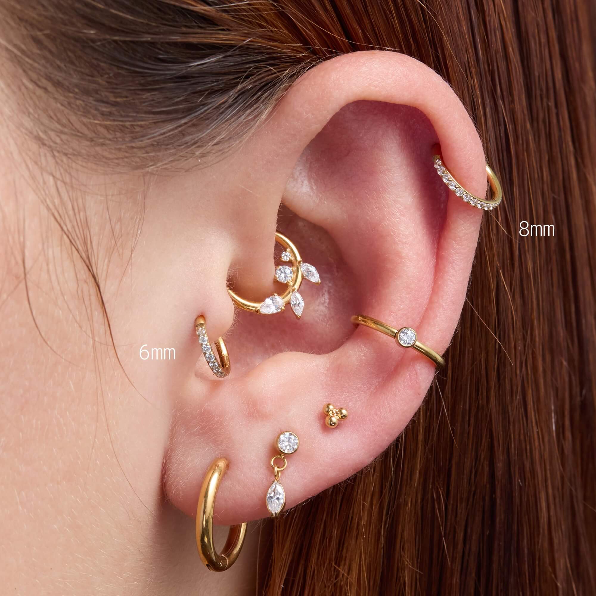 All sparkle, no distractions. The White Eternity Pavé Clicker features a continuous row of white cubic zirconia set around the front of a seamless clicker, creating a refined, light-catching finish that feels timeless rather than overdone. Easy to style solo or layer into your look. Available in 6mm, 8mm, 10mm and 12mm inner diameters.