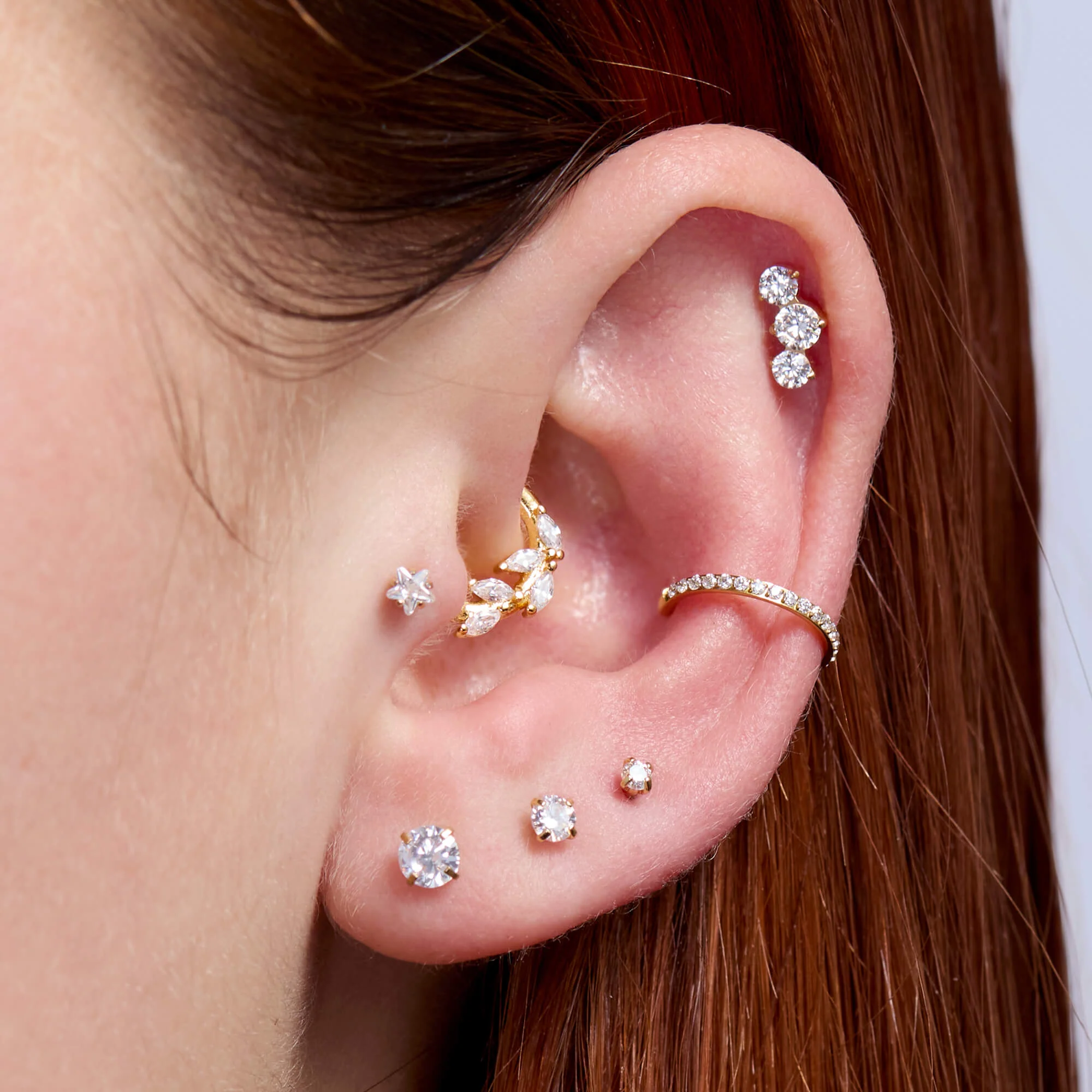Small in size, big on sparkle. Three white CZ stones are set in a neat trio formation for a refined, balanced look that catches the light without overpowering your ear. Made from implant-grade titanium for comfort and everyday wear, itās a polished staple youāll reach for again and again.