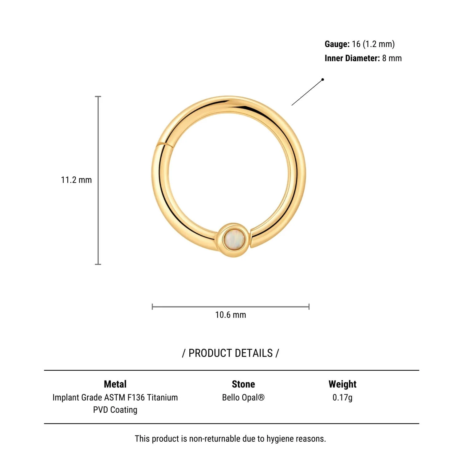 White Opal Single Bezel Clicker (16G)